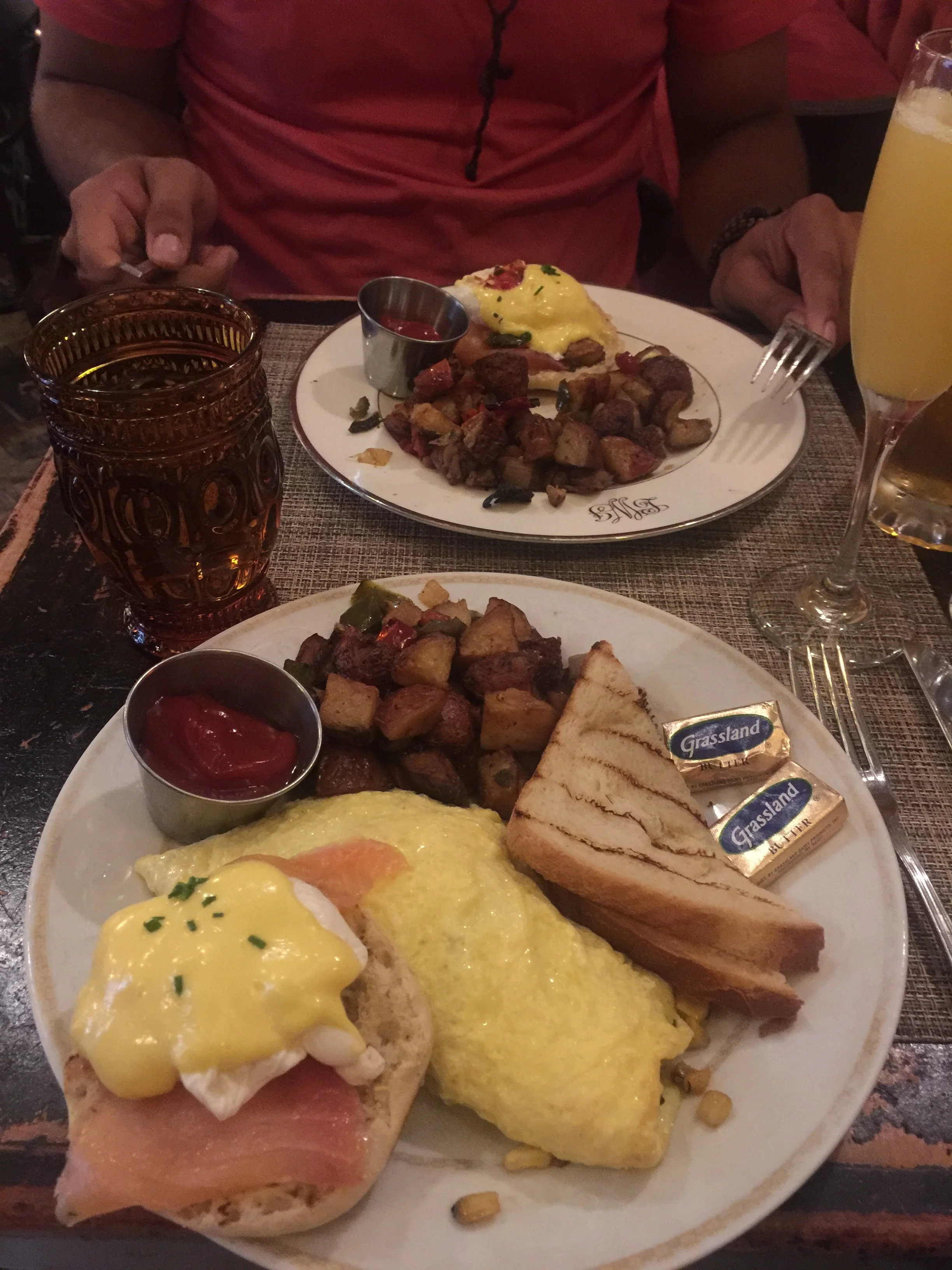 We arrived on Thursday night, on his birthday. We were a little tired from the flight and after having an incident with the taxi driver all we wanted was to freshen up and eat pizza. We found this amazing restaurant close to our hotel. Isola on Colobus - an Italian restaurant. Their pizza looked amazing but we didn't try it :(. It was my fault, I have been dairy free for a couple of months now and I was a little scared to try it with out taking pills that help relief the discomfort I get from eating dairy products so we opted for the pastas below. I gotta say, the pizza looked so good but these pastas were absolutely amazing. I ordered Pappardelle ai Funghi Porcini e Tartufo which is a homemade ribbon pasta with porcini mushroom and truffle oil (the one on the left) and Franky ordered Penne alla Bettola which was a pasta made with spicy tomato and vodka cream sauce (the one on the right). We both added grilled chicken and it went perfectly with both pastas. I didn't try Franky's pasta but he really liked it. Mine was oh so good, it really felt like it was homemade, it felt like they took their time to make it. I had never tried a pasta with truffle oil and I loved it. Last but not least from this restaurant, the service was great, one of the best experiences during our stay in NYC.